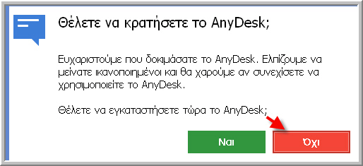 ΒΗΜΑ 4: ΟΠΟΤΕΔΗΠΟΤΕ ΟΛΟΚΛΗΡΩΘΟΥΝ ΟΙ ΕΡΓΑΣΙΕΣ ΑΠΟΜΑΚΡΥΣΜΕΝΗΣ ΠΡΟΣΒΑΣΗΣ ή ΟΠΟΤΕ το ΕΠΙΘΥΜΕΙΤΕ, μπορείτε, ΚΛΕΙΝΟΝΤΑΣ την εφαρμογή απομακρυσμένης πρόσβασης (συνιστάται να μην επιλέξετε να εγκατασταθεί η εφαρμογή), να ΔΙΑΚΟΨΕΤΕ ΤΗ ΔΥΝΑΤΟΤΗΤΑ ΑΠΟΜΑΚΡΥΣΜΕΝΗΣ ΠΡΟΣΒΑΣΗΣ ΣΤΟΝ Η/Υ σας! Οπότε τότε και δεν θα υπάρχει καμμία δυνατότητα συνέχισης και σύνδεσης του Υποστηρικτή/Τεχνικού, παρά μόνο εκ νέου ακολουθώντας την ίδια προαναφερόμενη διαδικασία, όποτε το επιθυμείτε (ασφάλεια περί συναίνεσης πρόσβασης):